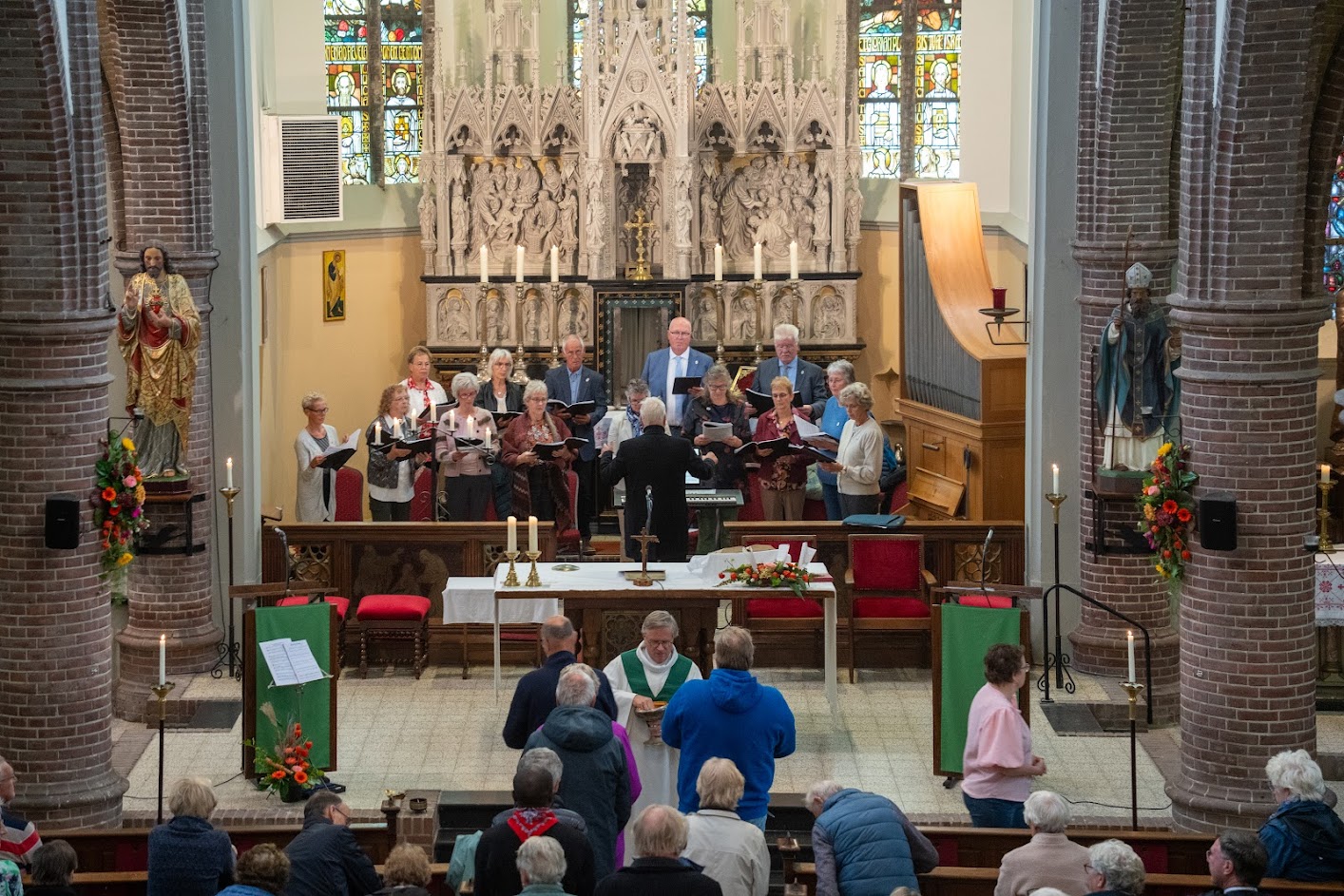 onderstaand het koor tijdens de viering van het 30 jarig jubileum op zondag 5 oktober 2025 in de Ludgeruskerk